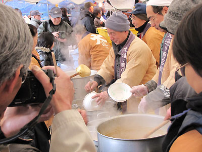 寒鱈汁を楽しむコツを。家で作るには、台所の窓を開放して鍋の前だけが温かいというシチュエーションに。そして、仕上がるころには、部屋の窓を開けて、ぶるっとくる状態を作っておく。バーベキューや芋煮のように屋外で食べるというのもありですよ。寒鱈まつりで実感。