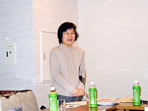 左>ユーモアのある語りでいつも会場を沸かせてくださる倉元さん。この日も、「料理作りはなかなか大変、さつまいもなんか入ってくると主食になっちゃう。そうすると野菜が余ってね」と。「商品案内が来ると買わなくちゃいけないのかとドキドキしちゃうんです。ニュースもっとシンプルで楽しいお知らせがいいですね。」倉本さん
