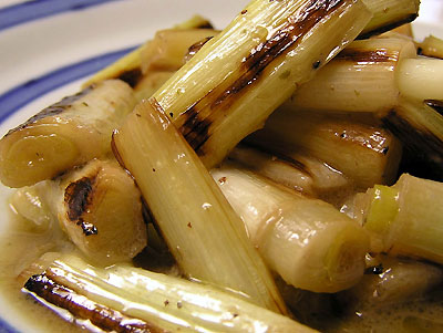 2. ねぎは、5cmくらいに切り、グリルなどでこんがり焼きます。